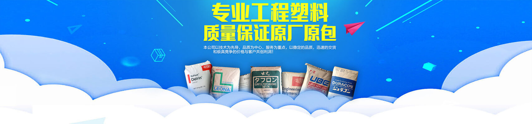 代客戶找料(提供物性表.UL報告.ROSH標準及SGS檢測報告等)。業務遍布全國各地,深受廣大客戶的歡迎。 本公司主要銷售: POM,PA6,PA66,PBT,PP,ABS,PC/ABS,PC.以及代理經營各國各種型號塑膠原料. 擁有完整、科學的質量管理體系。